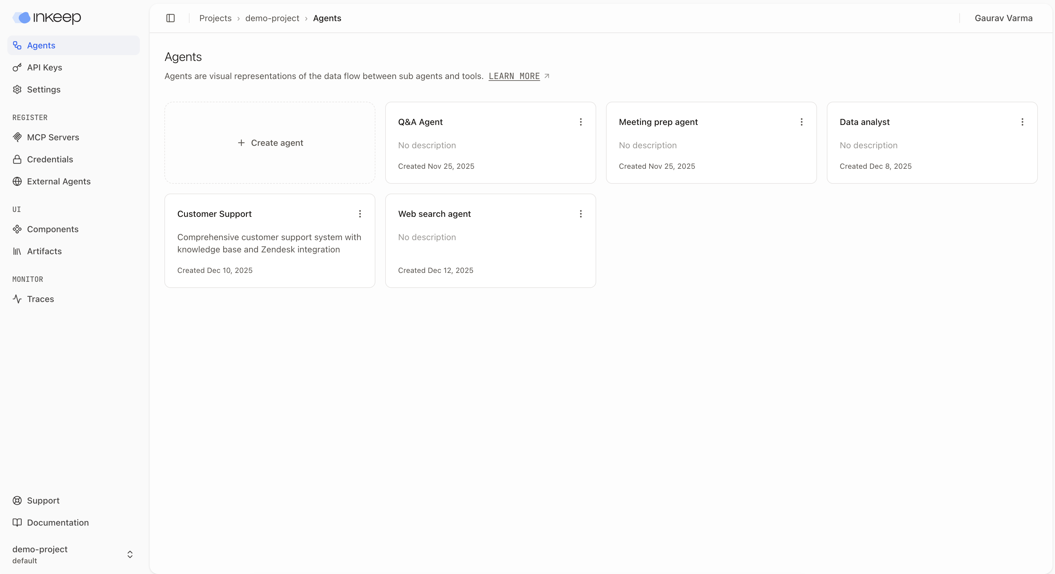Once you're in the project, you'll see the project overview page. You can see the list of agents that are part of the project.